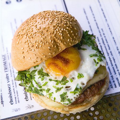 Hamburger met ei en 4 kruiden bestaat uit een hamburger van rundergehakt,
